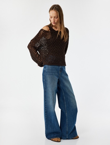 Dik Yaka Uzun Kollu Ajurlu Triko Kazak