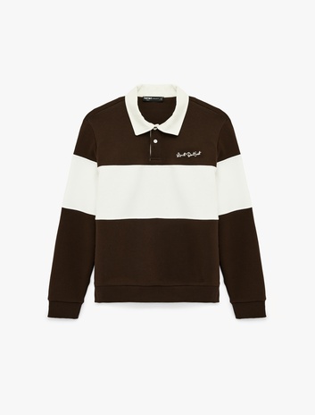 Uzun Kollu İşlemeli Renk Bloklu Polo Yaka Sweatshirt Sepete Ekle