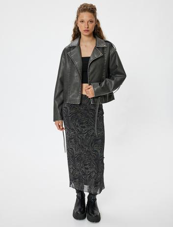 Midi Kalem Etek Zebra Desenli Tüllü Astarlı Sepete Ekle