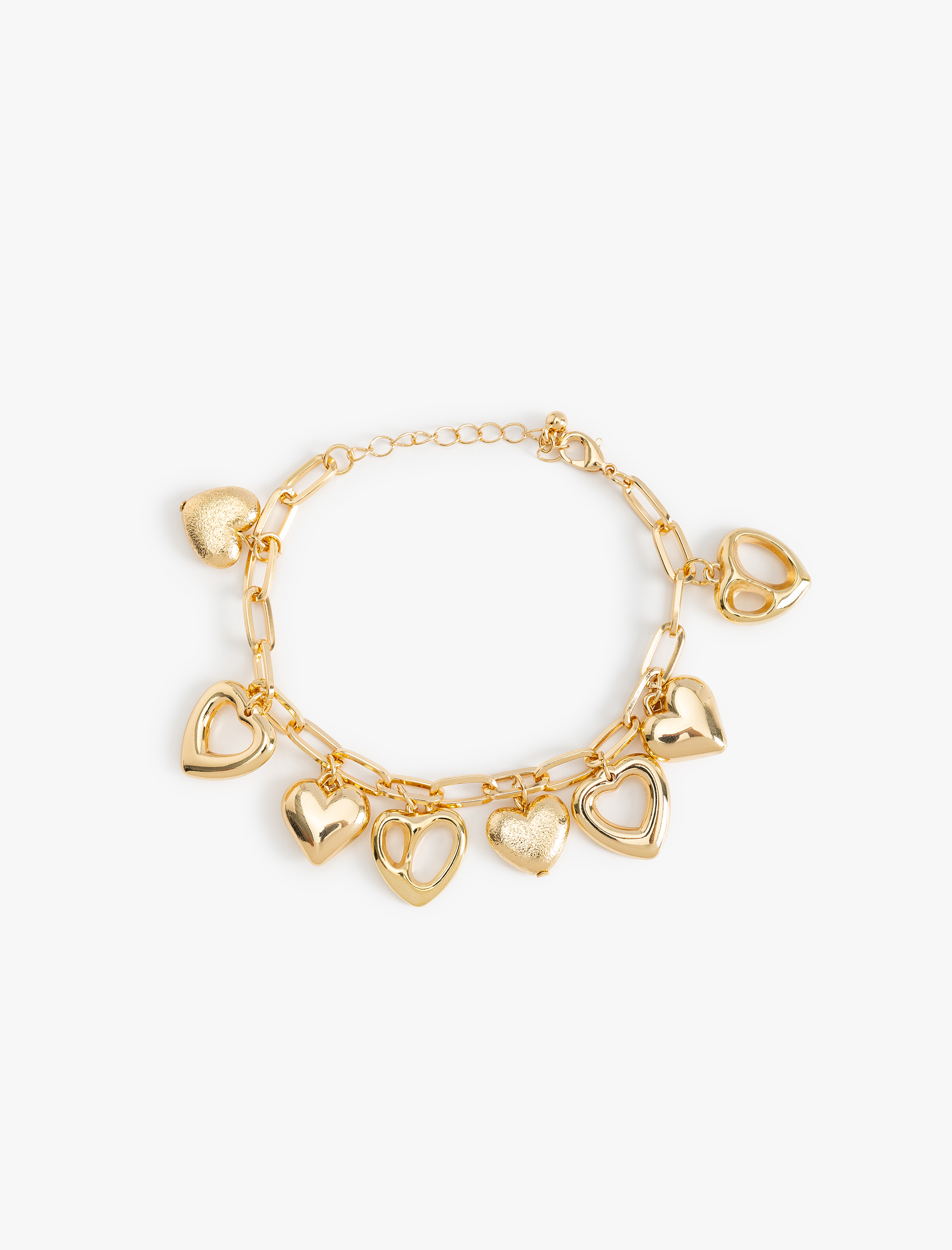 Kadın Kalp Detaylı Sallantılı Zincir Bileklik  Kadın Kalp Detaylı Sallantılı Zincir Bileklik  Kadın Kalp Detaylı Sallantılı Zincir Bileklik