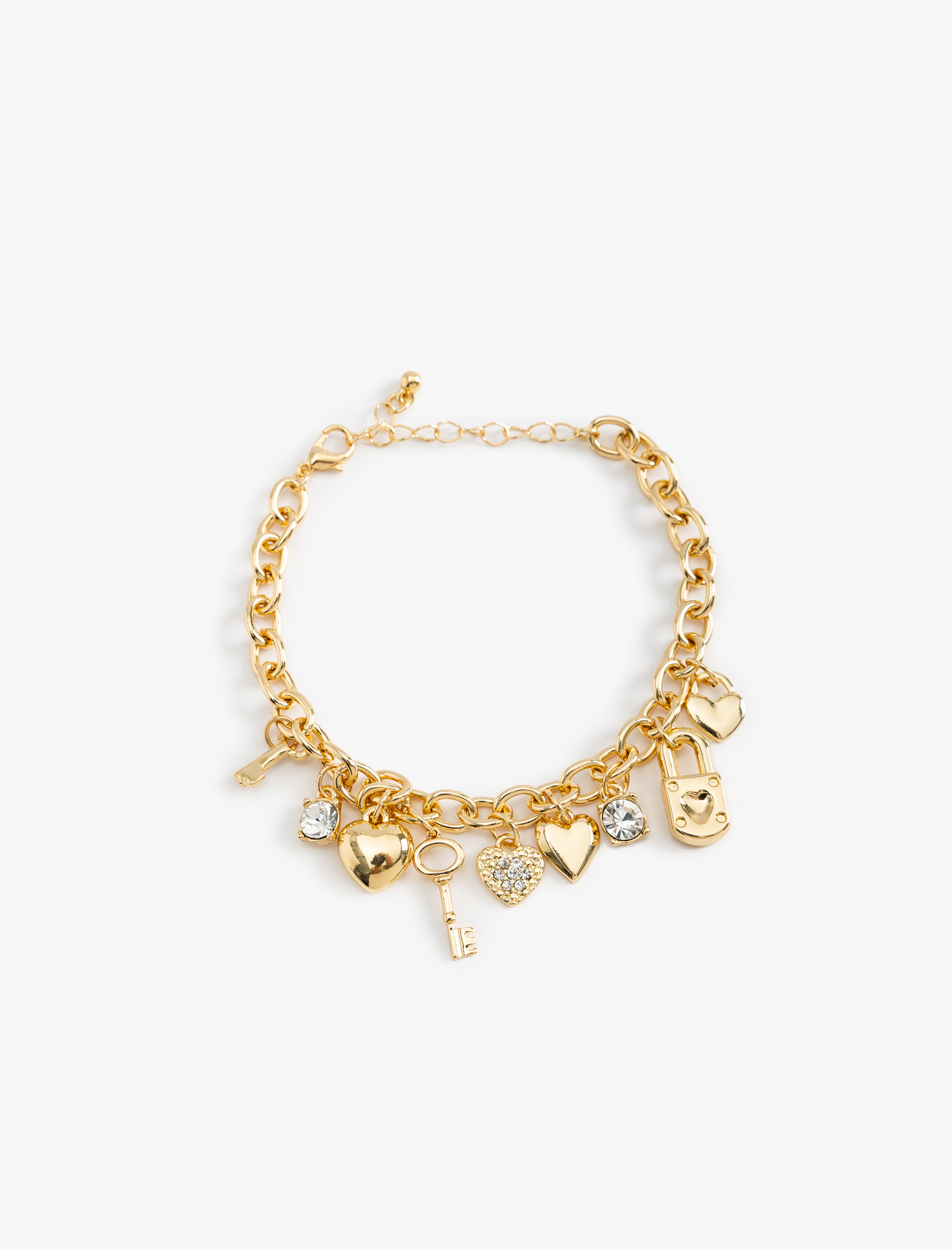Kadın Kalp Detaylı Sallantılı Zincir Bileklik  Kadın Kalp Detaylı Sallantılı Zincir Bileklik  Kadın Kalp Detaylı Sallantılı Zincir Bileklik