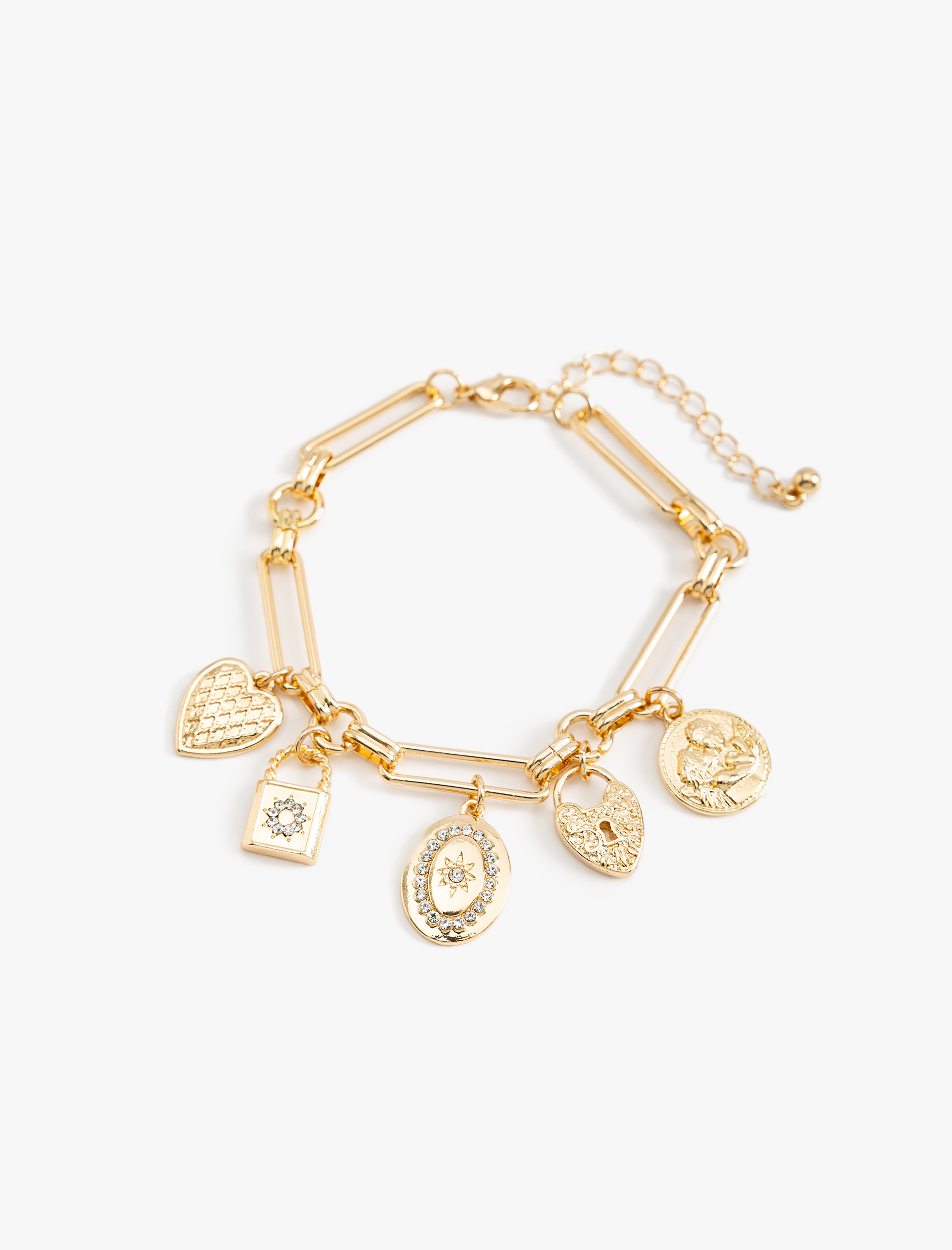 Kadın Kalp Detaylı Sallantılı Zincir Bileklik  Kadın Kalp Detaylı Sallantılı Zincir Bileklik  Kadın Kalp Detaylı Sallantılı Zincir Bileklik