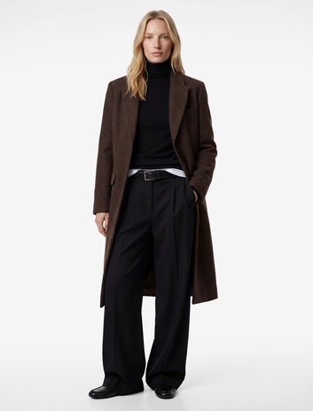 Koton X Şahika Ercümen - Oversize Kaban Kaşe Uzun Düğmeli Cepli Kruvaze Sepete Ekle
