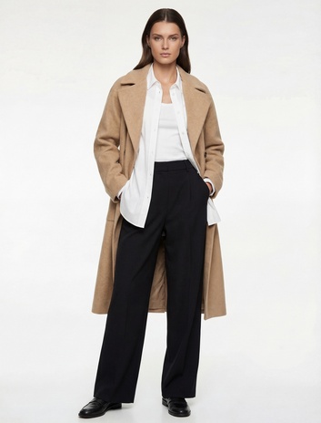 Uzun Kollu Cepli Kemerli Kruvaze Uzun Kaşe Kaban Sepete Ekle