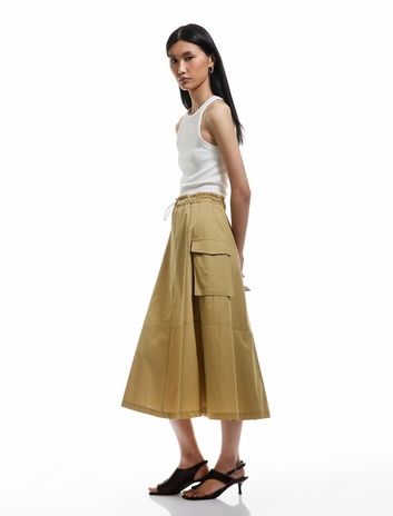 Pamuklu Kargo Cepli Poplin Uzun Kloş Etek