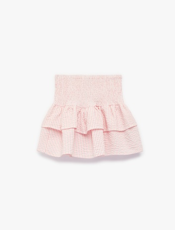 Yüksek Bel Gipeli Kat Kat Çizgili Fırfırlı Etek Sepete Ekle