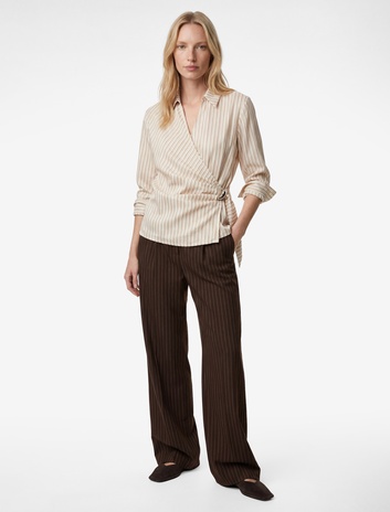 Uzun Kollu Aksesuarlı Yandan Bağlama Detaylı Kruvaze Çizgili Gömlek Sepete Ekle