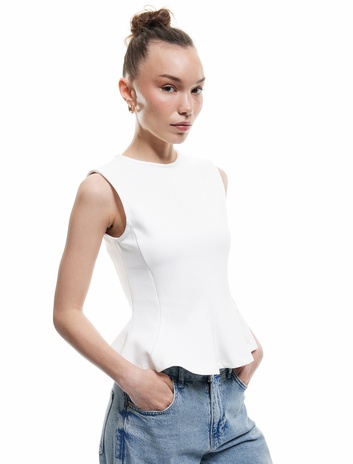 Pamuklu Slim Fit Bisiklet Yaka Volanlı Kolsuz Bluz