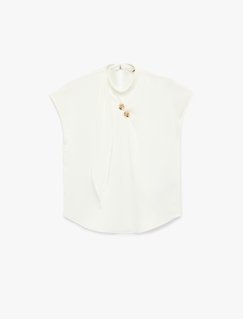 Metal Aksesuarlı Viskon Bol Kalıp Dik Yaka Kolsuz Bluz Sepete Ekle