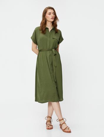 Gömlek Elbise Midi Boy Kısa Kollu Kuşaklı Sepete Ekle