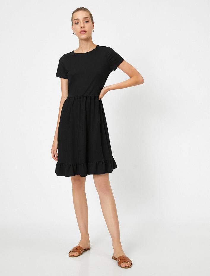 Bisiklet Yaka Kısa Kollu Mini Elbise Sepete Ekle