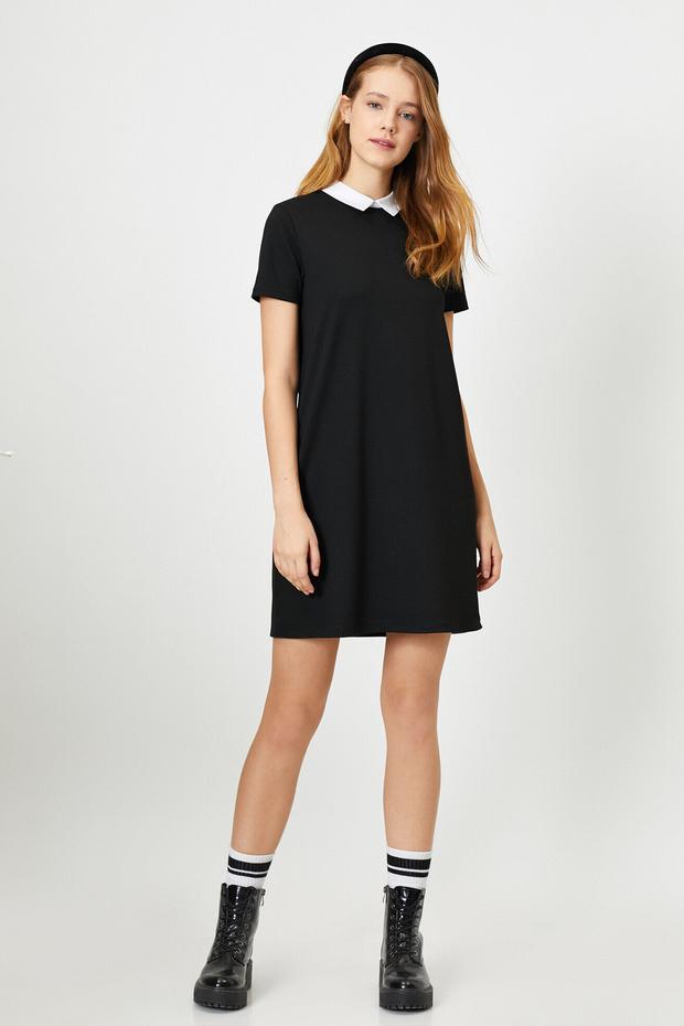Gömlek Yaka Kısa Kollu Mini Elbise Sepete Ekle