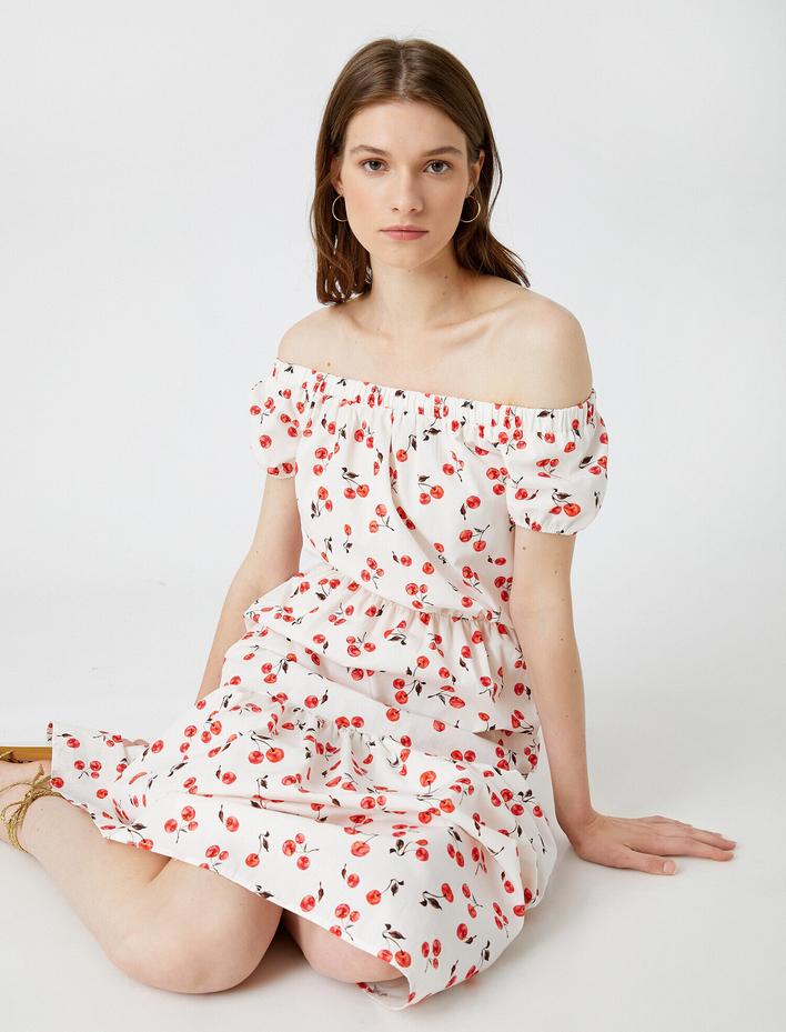 Desenli Elbise Omuz Açık Pamuklu Sepete Ekle