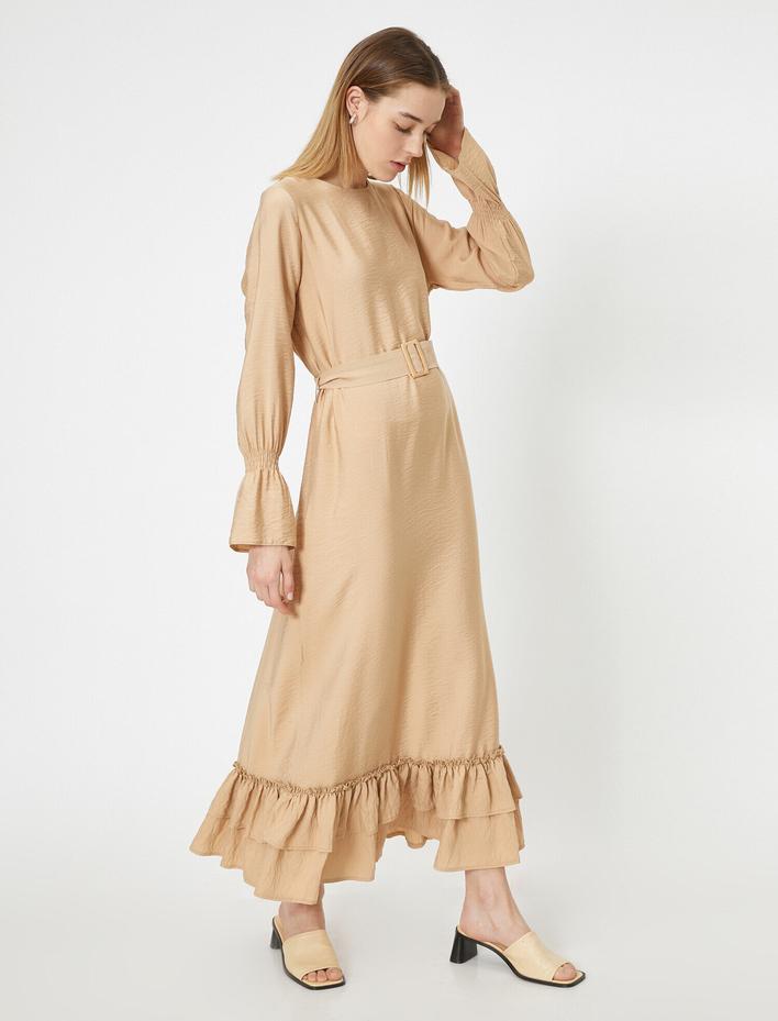 Beli Kemer Detaylı Uzun Kollu Uzun Elbise Sepete Ekle