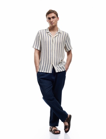 Beli Bağcıklı Cep Detaylı Keten Pamuk Karışımlı Chino Pantolon Sepete Ekle