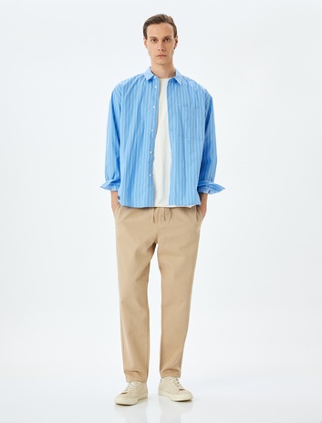 Beli Bağcıklı Cep Detaylı Pamuklu Chino Pantolon
