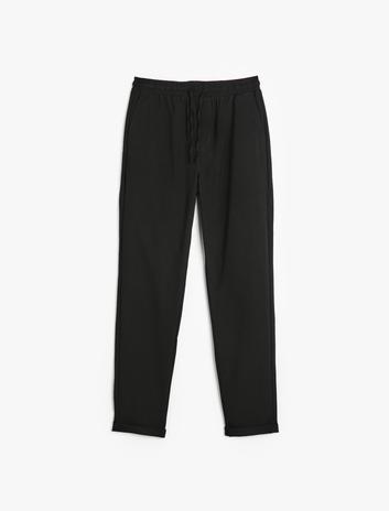 Viskon Karışımlı Beli Bağcıklı Chino Cep Detaylı Eşofman Pantolon
