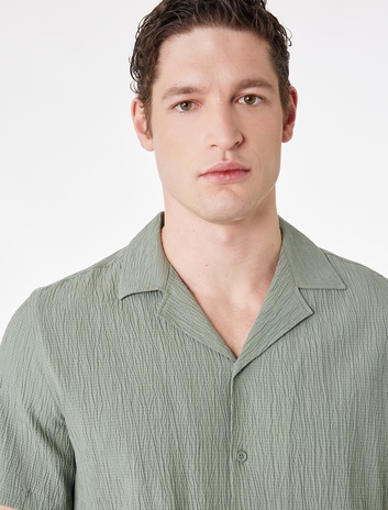 Regular Fit Kısa Kollu Dokulu Apaş Yaka Gömlek