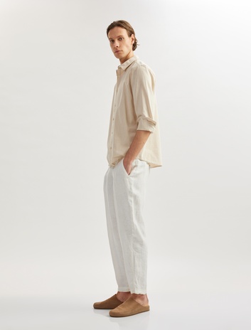 Keten Pamuk Karışımlı Beli Bağcıklı Chino Pantolon Sepete Ekle