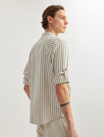 Pamuklu Çizgili Kıvırmalı Uzun Kollu Regular Fit Hakim Yaka Gömlek