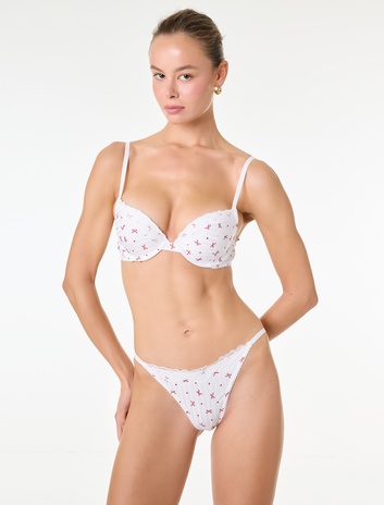 Kurdele Baskılı Dantel Detaylı Rahat Kalıp Saten String Külot