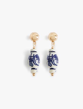 Kadın Seramik Küpe Etnik Desenli Orta Boy