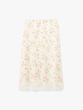 Dantel Detaylı Çiçekli Kloş Midi Saten Etek Sepete Ekle
