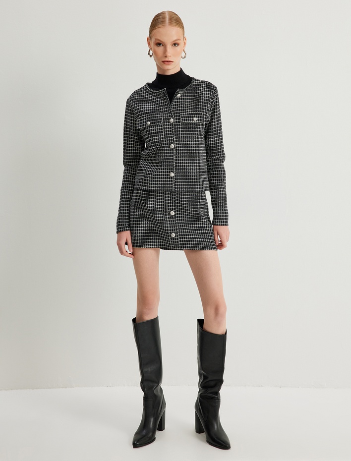 Düğme Detaylı Standart Bel Mini Tüvit Etek