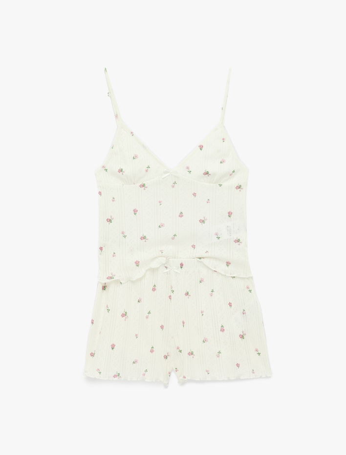 Rahat Kesim Kolsuz V Yaka Pamuklu Çiçekli Pijama Takımı - 2'li Set Sepete Ekle