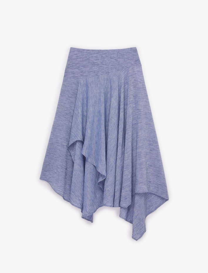 Asimetrik Kesim Normal Bel Midi Keten Görünümlü Etek Sepete Ekle