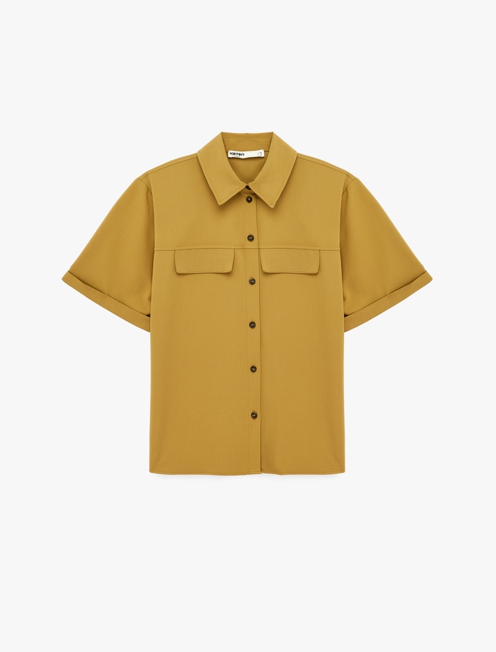 Viskon Karışımlı Düğmeli Cep Detaylı Kısa Kollu Gömlek Yaka Bluz Sepete Ekle