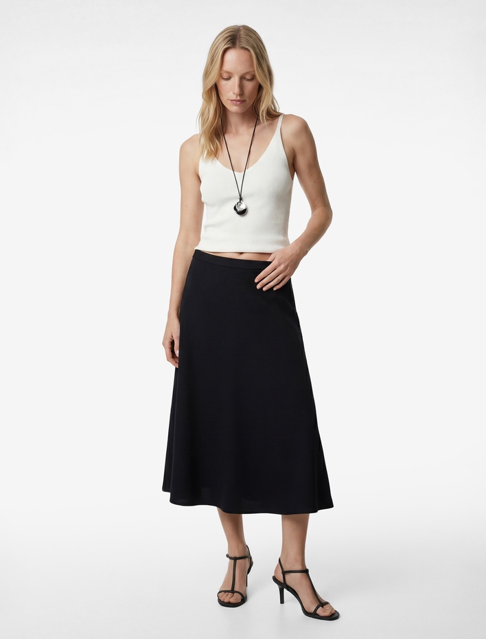 Koyun Yünü Karışımlı Normal Bel Volanlı Kloş Midi Etek Sepete Ekle