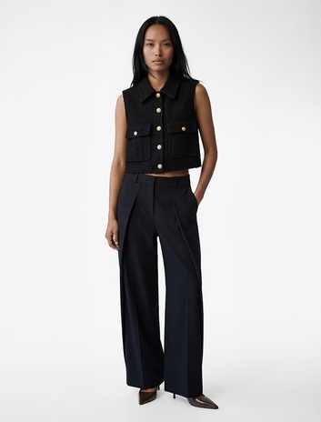 Düğmeli Cep Detaylı Kruvaze Yaka Kolsuz Crop Yelek Sepete Ekle
