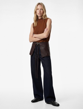 Koton X Sibil Çetinkaya - Kemerli Cepli Yüksek Bel Düz Bol Paça Kumaş Pantolon Sepete Ekle