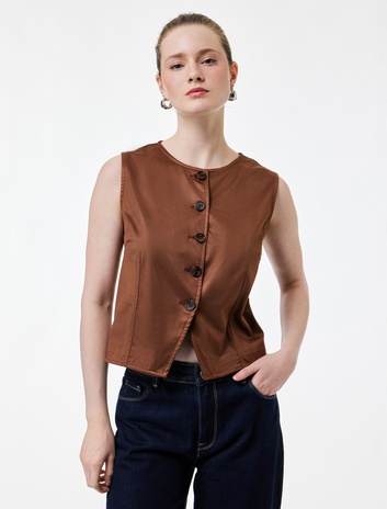 Düğmeli Bisiklet Yaka Suni Süet Yelek Sepete Ekle