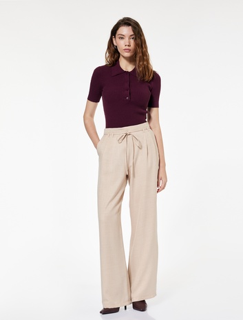 Beli Bağcıklı Pileli Düz Geniş Paça Palazzo Pantolon