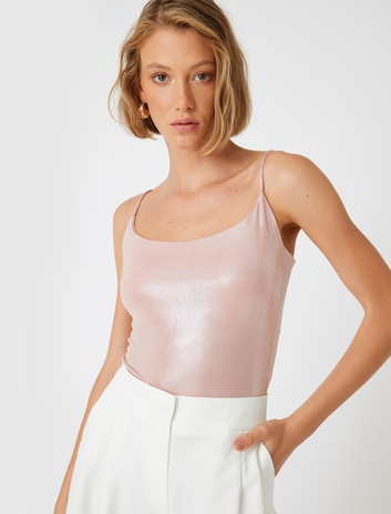 Abiye Bluz İp Askılı Çıtçıtlı Slim Fit Bisiklet Yaka