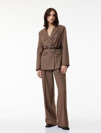 Yüksek Bel Geniş Paça Viskon Karışımlı Ekoseli Pantolon