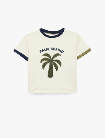 Palmiye Baskılı Kısa Kollu Bisiklet Yaka Pamuklu Tişört Sepete Ekle