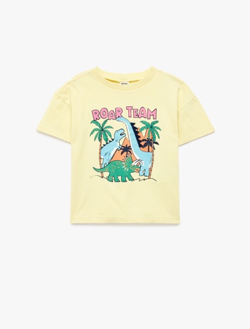Bisiklet Yaka Kısa Kollu Pamuklu Dinozor Baskılı Tişört Sepete Ekle