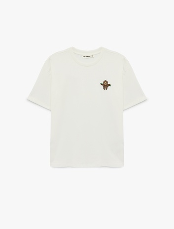 Bisiklet Yaka Kısa Kollu Koala Nakışlı Pamuklu Oversize Tişört Sepete Ekle