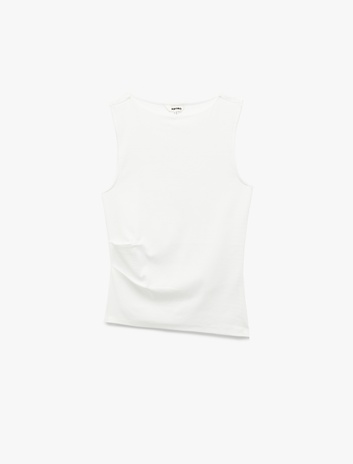 Pamuklu Asimetrik Kesim Kolsuz Kayık Yaka Bluz Sepete Ekle