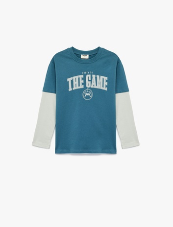 Pamuklu Bisiklet Yaka Baskılı Uzun Kollu Tişört Sepete Ekle