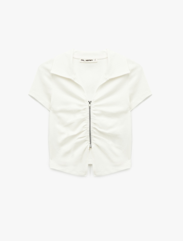 Slim Fit Kısa Kollu Klasik Yaka Fermuar Detaylı Tişört Sepete Ekle