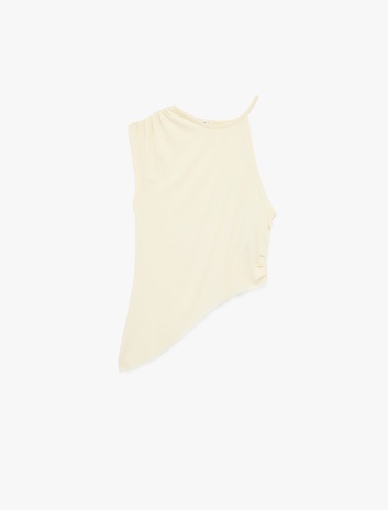 Asimetrik Kesim Viskon Bisiklet Yaka Kolsuz Tişört Sepete Ekle
