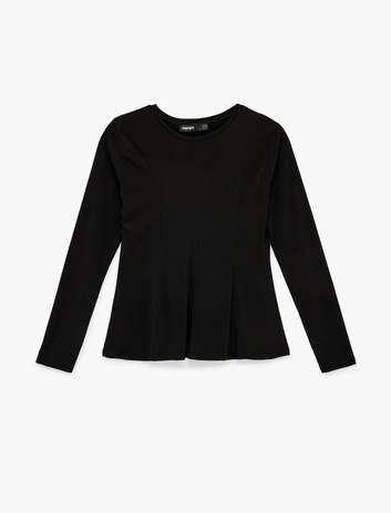 Slim Fit Sandy Kumaş Uzun Kollu Bisiklet Yaka Hafif Peplum Kesim Tişört Sepete Ekle