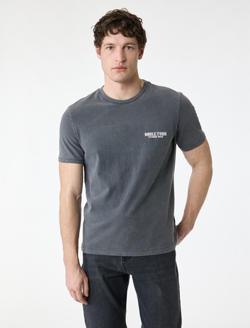 Regular Fit Kısa Kollu Pamuklu Yıkamalı Bisiklet Yaka Arkası Baskılı Tişört Sepete Ekle