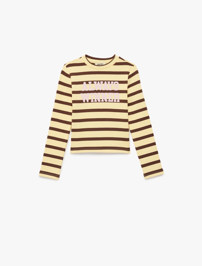 Uzun Kollu Bisiklet Yaka Baskılı Pamuklu Çizgili Tişört Sepete Ekle