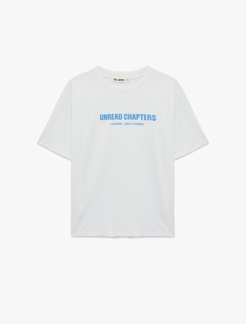 Rahat Kalıp Kısa Kollu Bisiklet Yaka Slogan Baskılı Tişört Sepete Ekle