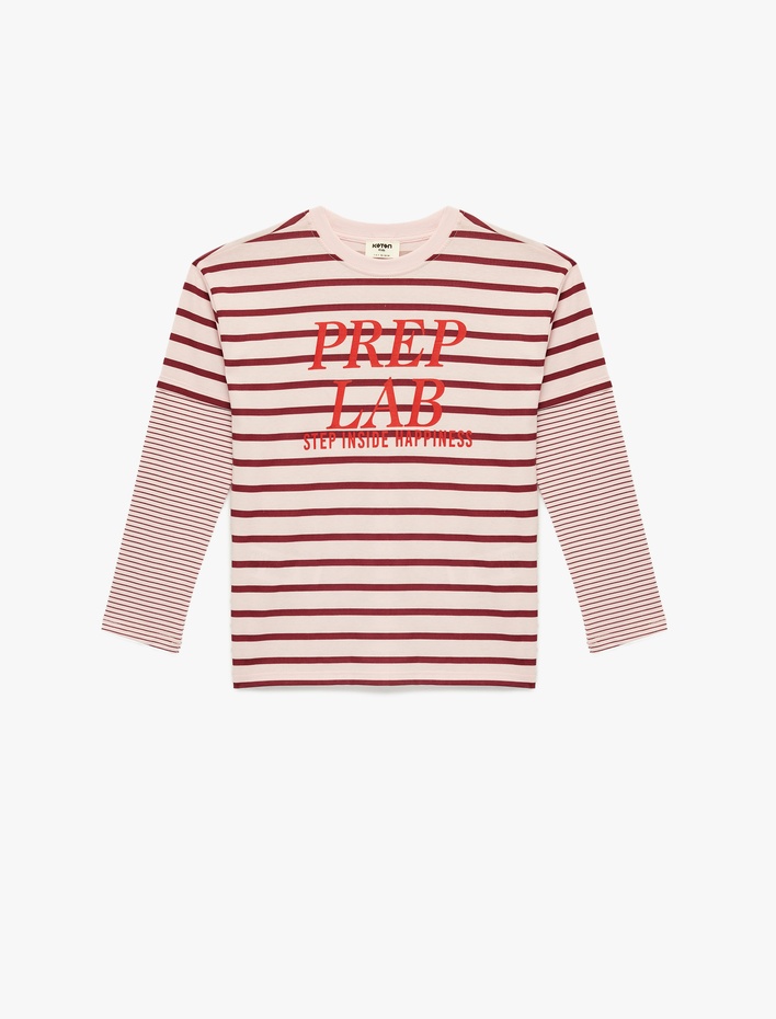 Uzun Kollu Bisiklet Yaka Baskılı Pamuklu Çizgili Tişört Sepete Ekle